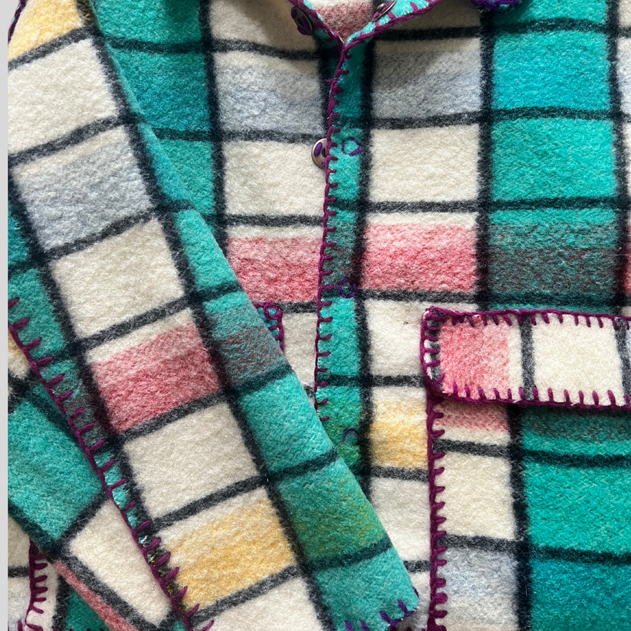 - Handcrafted from a vintage blanket, ensuring each piece is unique and one-of-a-kind